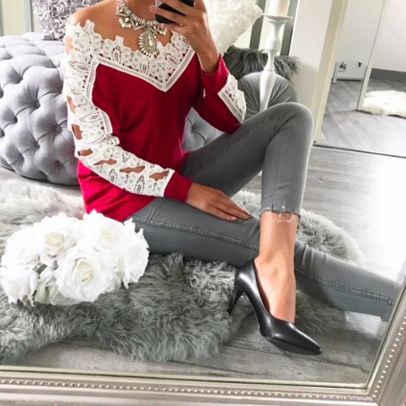 >> Best Quality Click! <<Shirt Women Clothes 2017 Casual Lace Blouse White red off shoulder Tops Loose Cotton Plus Size Korean Clothing Blusas Femininas white-cotton-lace-top