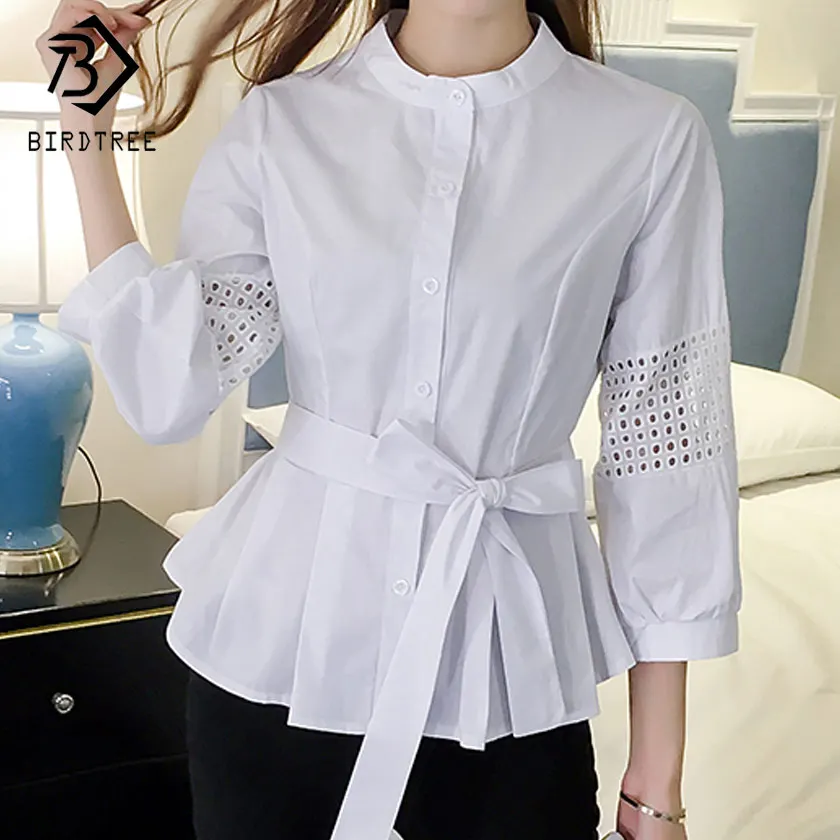 4.9 99 Video Reviews Forked tail Lace White Shirts Women Blusas 2017 Autumn Tops Korean Hollow Out Spliced Female Shirts Cheap Clothes China T78151AW white-cotton-lace-top