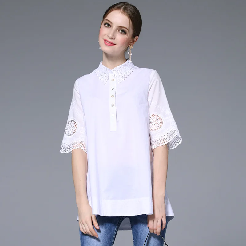 Lace Blouses Loose Casual Shirt Tops white-cotton-lace-top Look At