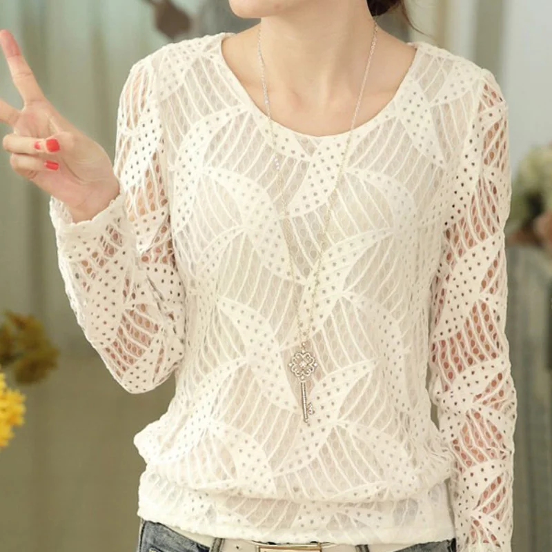 >> Unparalleled Click! <<2017 White Blusas Women Fashion Long Sleeve Lace Blouse Spring Autumn Womens Clothes Crochet Tops Chiffon Shirt A722 white-cotton-lace-top