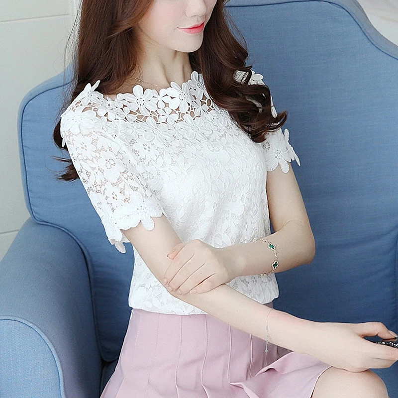 4.9 100 Video Reviews 2017 autumn blusas femininas women blouse white lace sexy off shoulder short sleeve renda crochet casual shirts tops white-cotton-lace-top