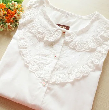5 102 Video Reviews Pure Cotton Shirt 2017 Spring Fashion Women's Peter Pan Collar Solid White Princess Tops Long Sleeve Lace Female Blusa Blouses white-cotton-lace-top