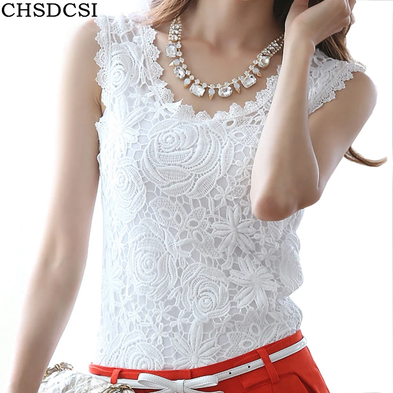 Blusas Femininas 2017 Summer Women Blouse Lace Vintage Sleeveless White Renda Crochet Casual Shirts Tops Plus Size S M L XL XXL white-cotton-lace-top
