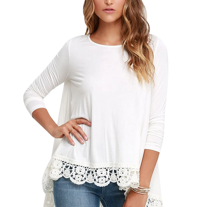 >> low price Click! <<New Fashion Women Shirt Tops Long Sleeve Shirt White Casual Lace Up Loose blouse Black camiseta mujer Autumn Shirts blusas white-cotton-lace-top