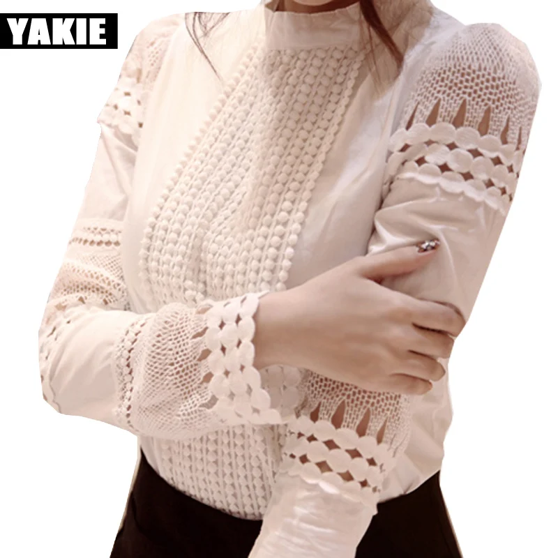 out lace blusas Plus Size Loose Elegant Office white Ladies Blouses
