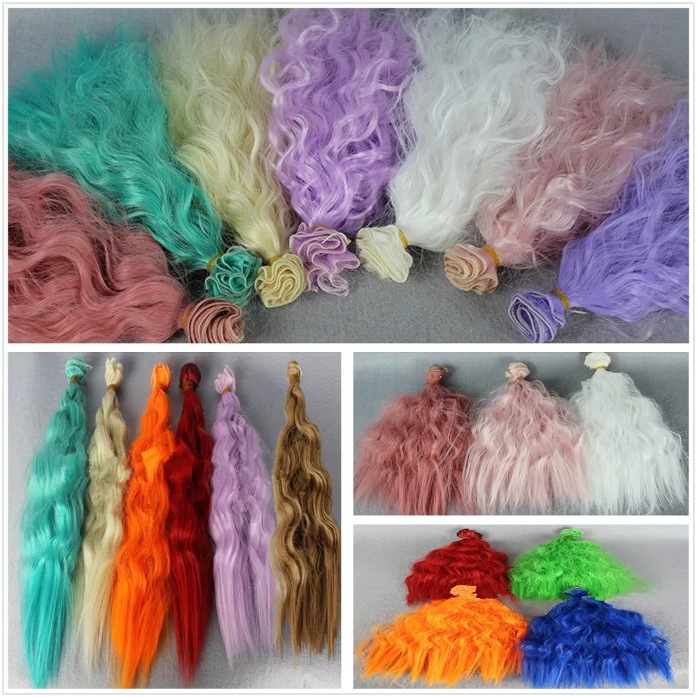 Check Price 10Pcs/lot NEW Corn Curly Wavy Doll DIY Wigs For 1/3 1/4 1/6 BJD SD High-temperature Wire Handmade Doll Wig Hair 25*100CM 13Color wavy-wig Cheap