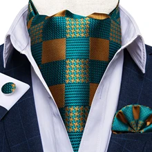 Cheap price Men's Silk Vintage Teal Green Gold Check Cravat Ascot Wedding Formal Scrunch British Necktie Pocket Square Cufflinks Set DiBanGu Ties Special Order Now! good quality