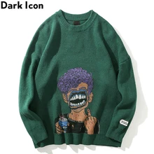 Cheap price Dark Icon Printing Ripped Men's Sweater Round Neck Oversized Sweaters for Men Streetwear Cloting Sweaters Special Order Now! good quality