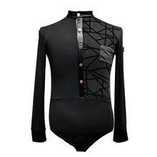 Cheap price Men's Latin Dance Costume Adult New Dance Wear Long Sleeve Modern Dance Dress One-piece Shirt Black Shirt Stage Special Order Now! good quality