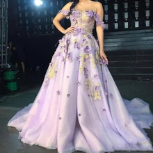 Cheap price 2020 Lilac A Line Off Shoulder Evening Dresses 3D Appliques Lace Prom Party Wear Plus Size Formal Gowns vestidos de noiva Special Occasion Dresses Special Order Now! good quality