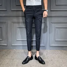 Do not wait Men's suit pants 2020 spring and summer new slim plaid nine points pants trousers business casual suit pants personality youth Suits Special Price Only !!!