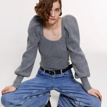 >>>> I recommend it Sexy Women Cashmere Blend Sweater 2020 Vintage Spring Square Collar PUff Long Sleve Grey KNitting Pullver Sweaters Sweaters Click here !!!